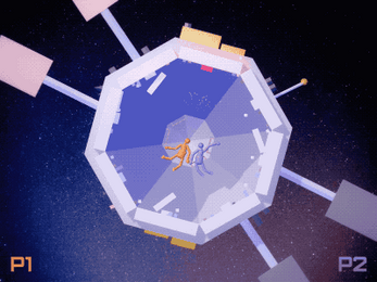 Press 'down' to grab onto walls and objects around the cabin, and use the left and right keys to swing your body around. Try to out-maneuver your opponent or try to throw them out into the void of space to win.